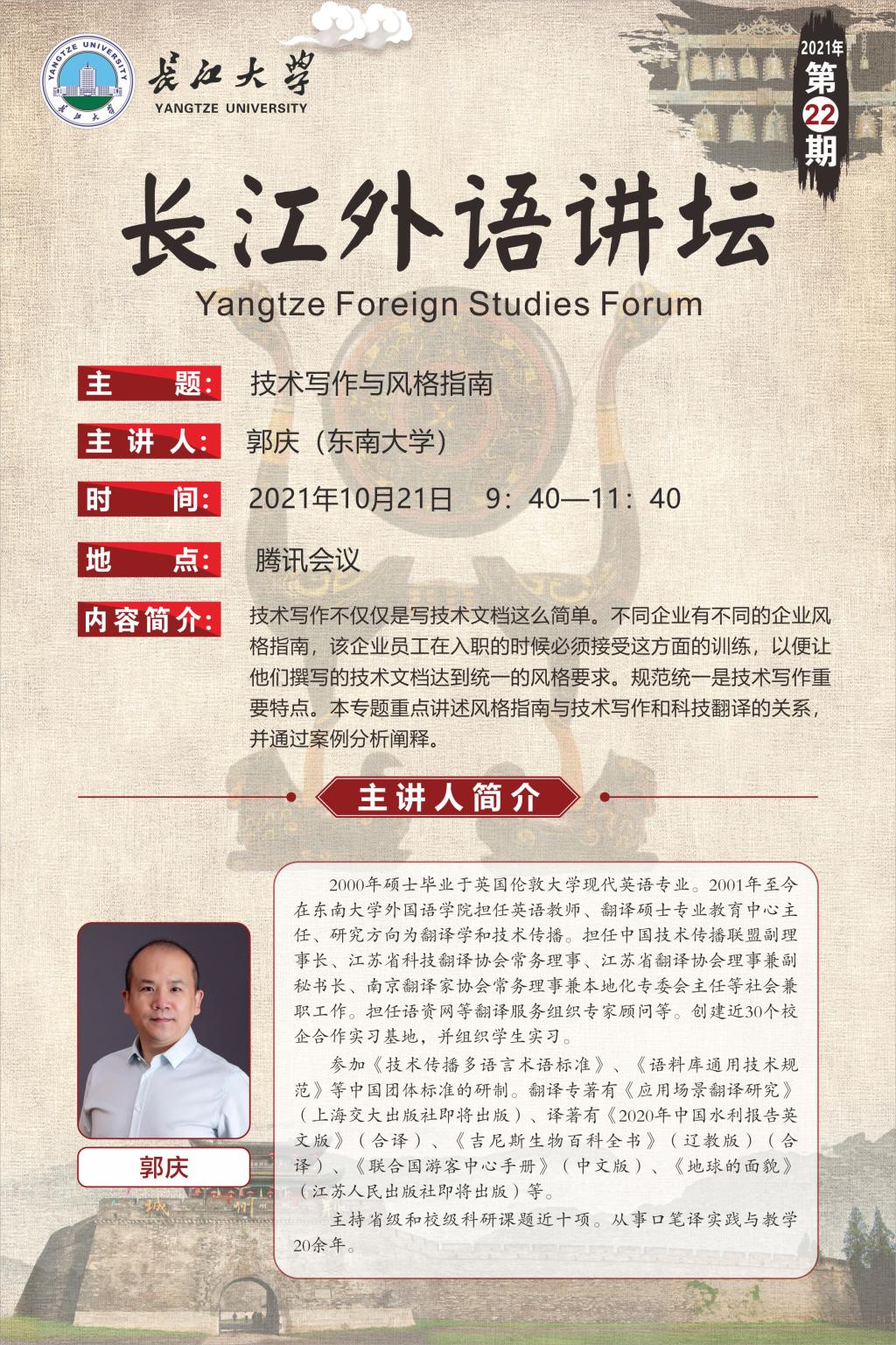 长江外语讲坛(2021年第二十二讲)技术写作与风格指南