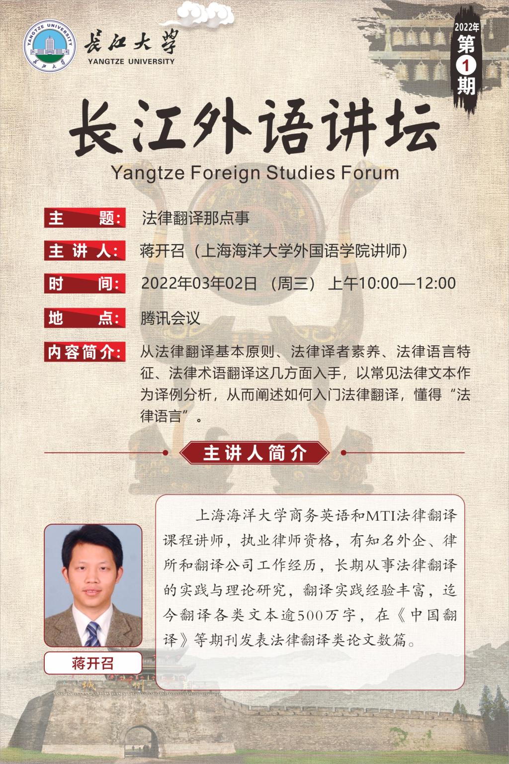 长江外语讲坛(2022年第一讲)法律翻译那点事