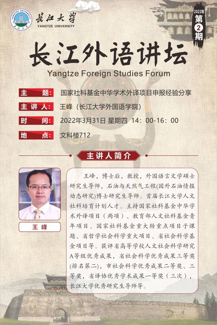 长江外语讲坛(2022年第二讲)国家社科基金中华学术外译项目申报经验分享