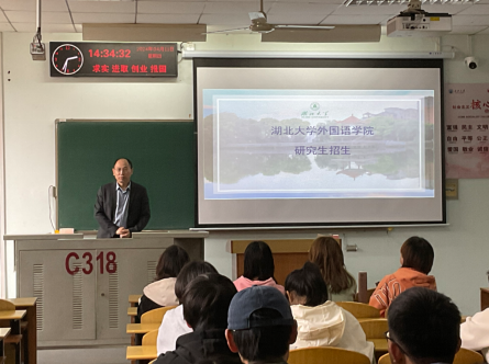 (文/肖贻之 张宇 图/张宇)4月11日下午,湖北大学外国语学院杨小彬副院长一行莅临我院,为学院大三学生带来了一场关于研究生考试备考策略的精彩讲座。此次活动旨在帮助有意向报考湖北大学研究生的同学们更好地了解考试内容,制定有效的复习计划,提高备考效率。