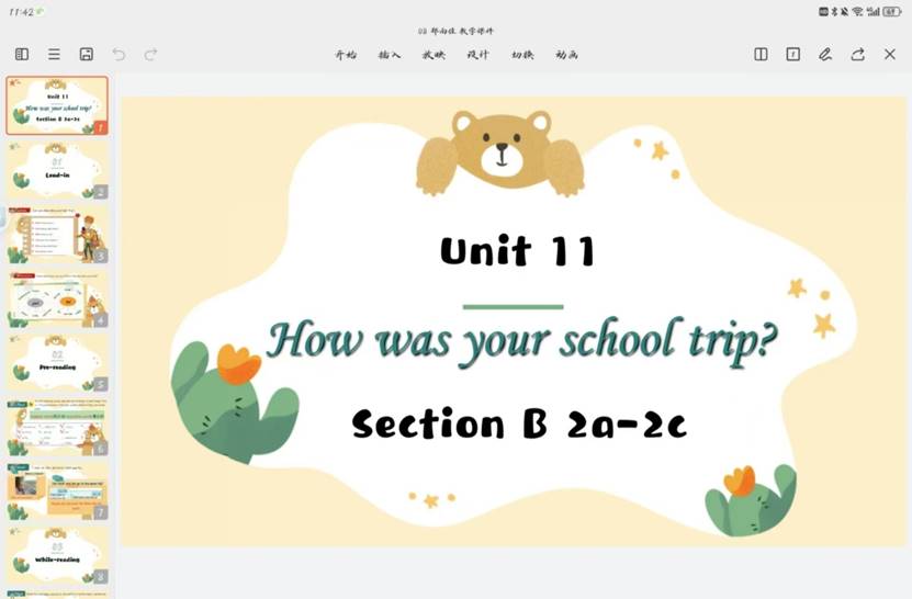 郑雨佳同学的磨课内容为七年级下册人教版Unit 11 How was your school trip?中的2a-2c部分,课型为阅读课。导入阶段,郑雨佳同学以紧贴学生实际生活情境的方式,激发同学对教学内容相关话题的自觉联想(对最近一次旅行的回忆和描述)。以关键词提示和支架式教学的方式,为学生提供了具有结构性和逻辑性的思维方式,并于其中穿插对重点词汇的渗透和讲解,为学生在接下来的课程学习过程中打下良好基础和铺垫。而在课文内容的具体讲解过程中,又采用了诸如小组展示等多元化的教学方式,通过表格和思维导图等教学形式辅助学生对教学内容进行更为深刻和透彻的理解与学习。