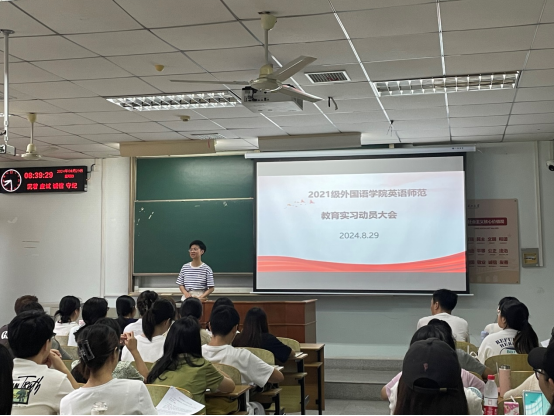 (通讯员 刘佳意)为推进实习工作的顺利开展,8月29日上午,外国语学院在13教c-120召开了英语专业师范生教育实习动员大会。学院副院长徐芳、英语系主任王娟、英语系王娟老师、辅导员马天雨,以及2021级的全体师范生参加会议。